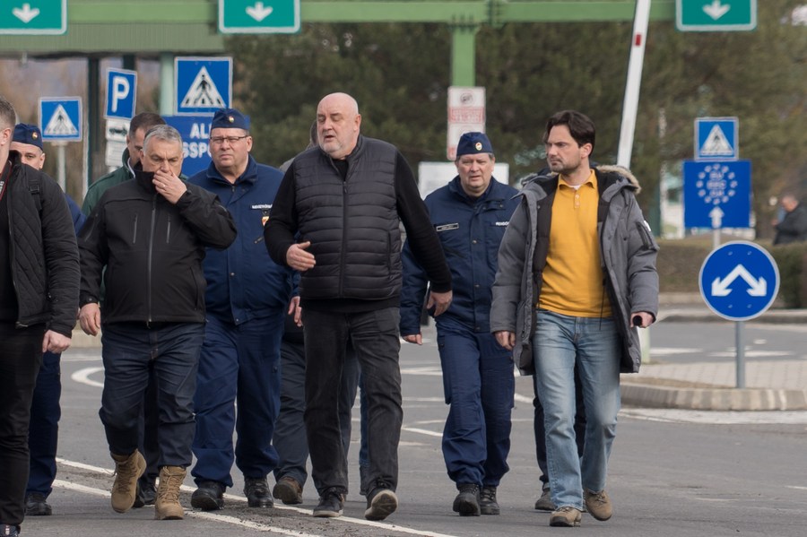Hungarian Prime Minister Viktor Orban inspects a border station with Ukraine in east Hungary, Feb. 26, 2022. (Photo by Attila Volgyi/Xinhua)