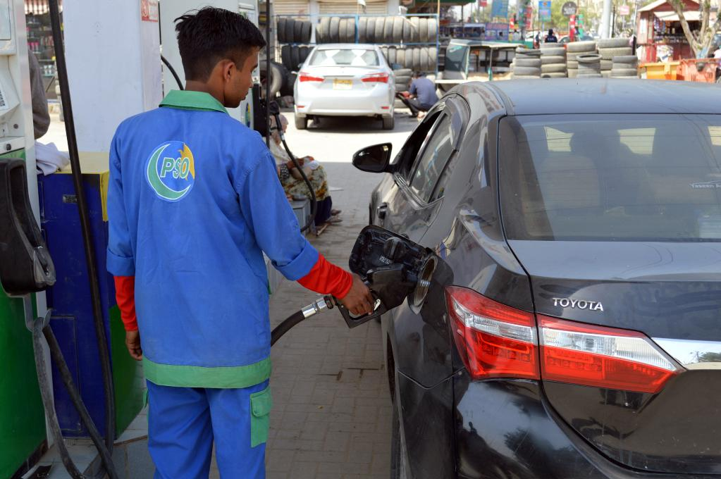 An employee fills tank of a vehicle at a fuel station in southern Pakistani port city of Karachi on March 1, 2022. Pakistani Prime Minister Imran Khan on Monday announced relief and incentives for the public as a respite in the ongoing wave of inflation and price hike in the country. (Str/Xinhua)