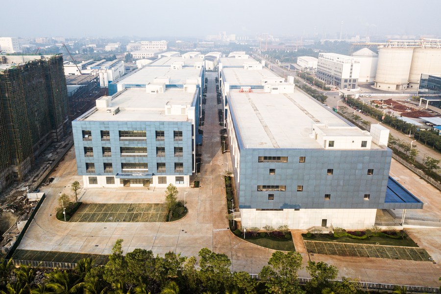 Aerial photo taken on Jan. 2, 2022 shows a factory building and overseas warehouse project at the Yangpu Bonded Port Area in the Yangpu Economic Development Zone, south China's Hainan Province. (Xinhua/Pu Xiaoxu)