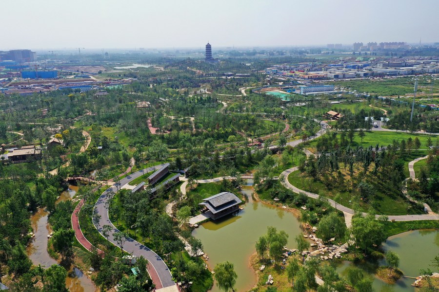 Aerial photo taken on Sept. 1, 2021 shows a park in Xiong'an New Area, north China's Hebei Province. (Xinhua/Mu Yu)