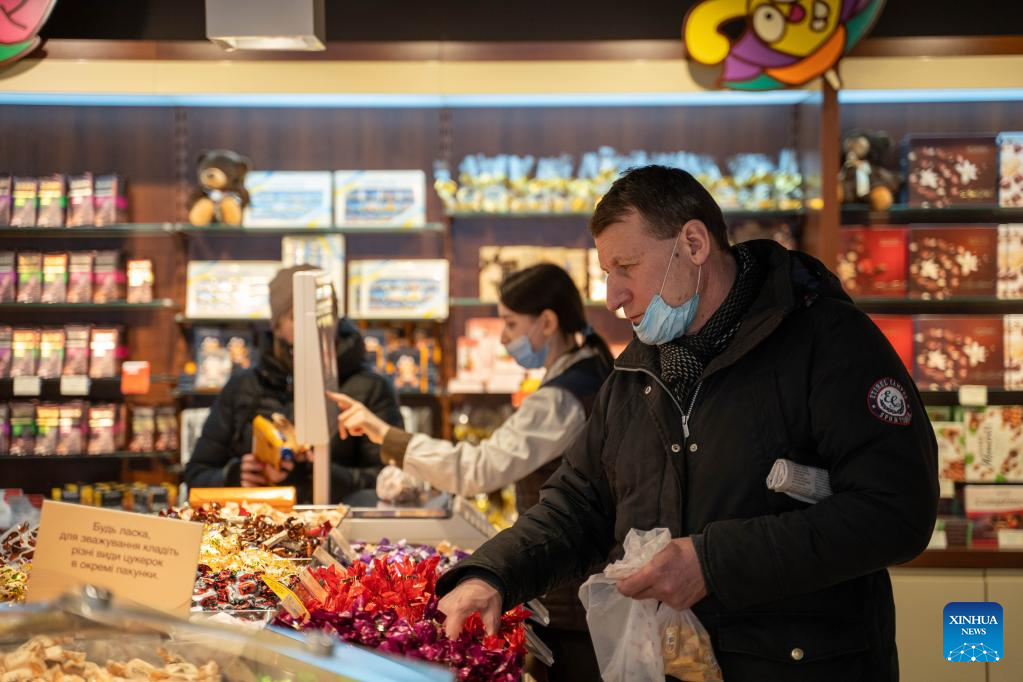 A citizen shops at a store in Lviv, Ukraine, March 1, 2022. (Xinhua/Chen Wenxian)