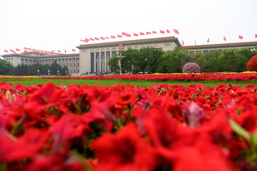 Photo taken on May 21, 2020 shows a view of the Great Hall of the People in Beijing, capital of China. (Xinhua/Liu Jinhai)