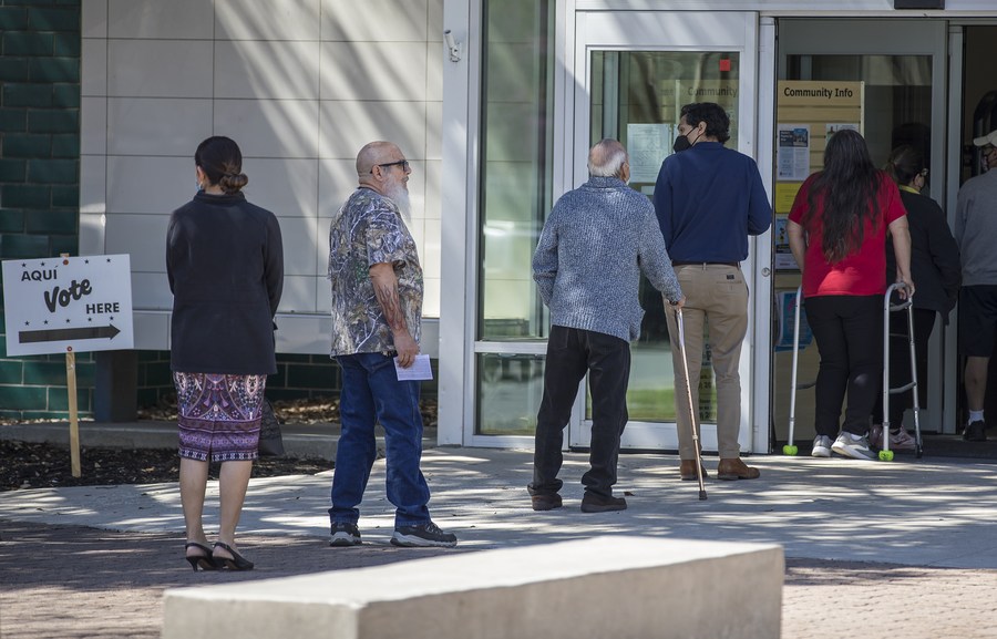 Voters arrive at a polling station for the Texas 2022 primary election in Austin, Texas, the United States, on March 1, 2022. (Photo by Bo Lee/Xinhua)