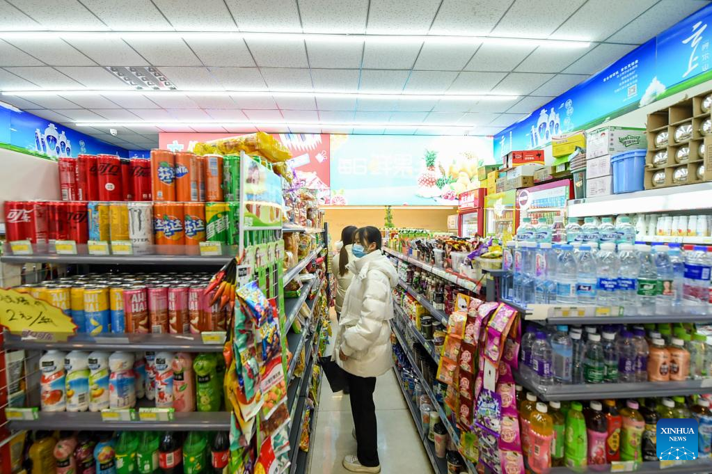 Students shop at the campus of Inner Mongolia Medical University in Hohhot, north China's Inner Mongolia Autonomous Region, March 2, 2022. Since the latest resurgence of COVID-19 in Hohhot, Inner Mongolia Medical University has implemented closed-off management at campus, and taken a variety of measures to ensure the safety of students. (Xinhua/Peng Yuan)