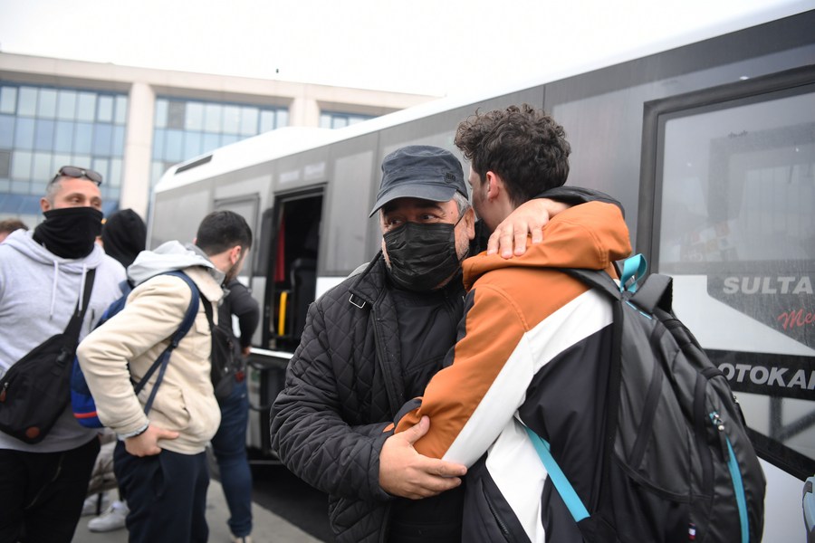 Turkish citizens evacuated from Ukraine arrive in Istanbul, Turkey, on Feb. 28, 2022. (Xinhua/Shadati)