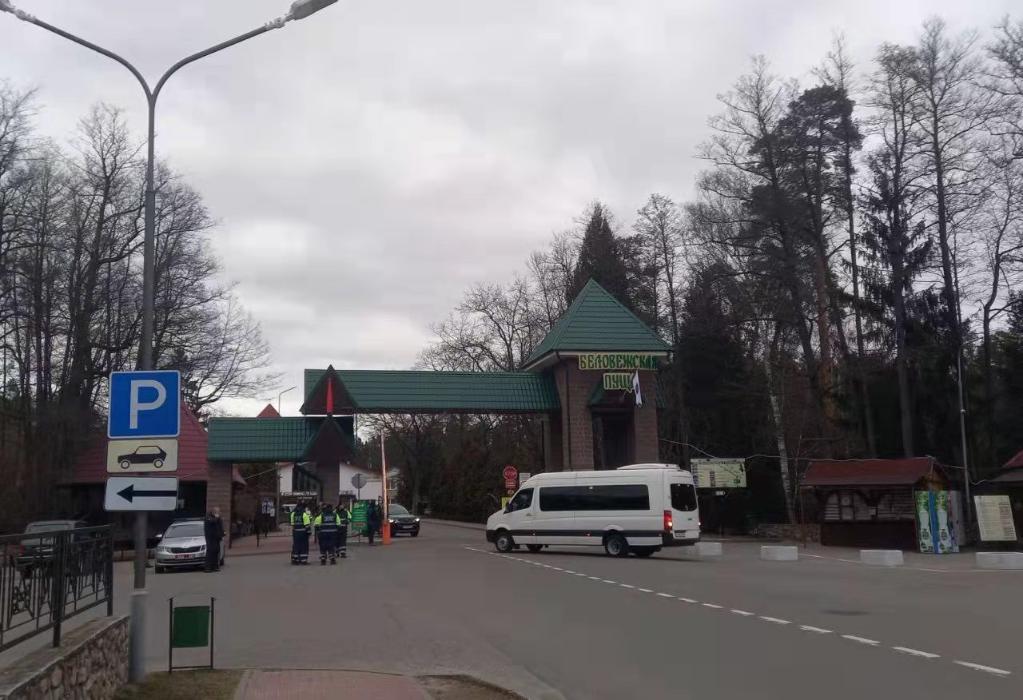 Photo taken on March 2, 2022 shows an entrance of the Belovezhskaya forest nature reserve in the border area between Belarus and Poland. (Xinhua/Zhang Jiye)