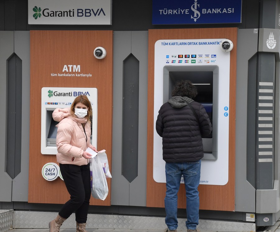 A man uses an ATM in Istanbul, Turkey, on Feb. 14, 2022. (Xinhua/Shadati)