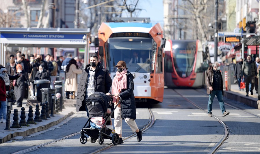 People walk on a street in Istanbul, Turkey, Feb. 11, 2022. (Xinhua/Shadati)
