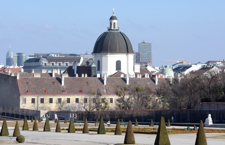 Photo taken on Feb. 28, 2022 shows a view of the Belvedere Garden in Vienna, Austria. (Xinhua/Guo Chen)