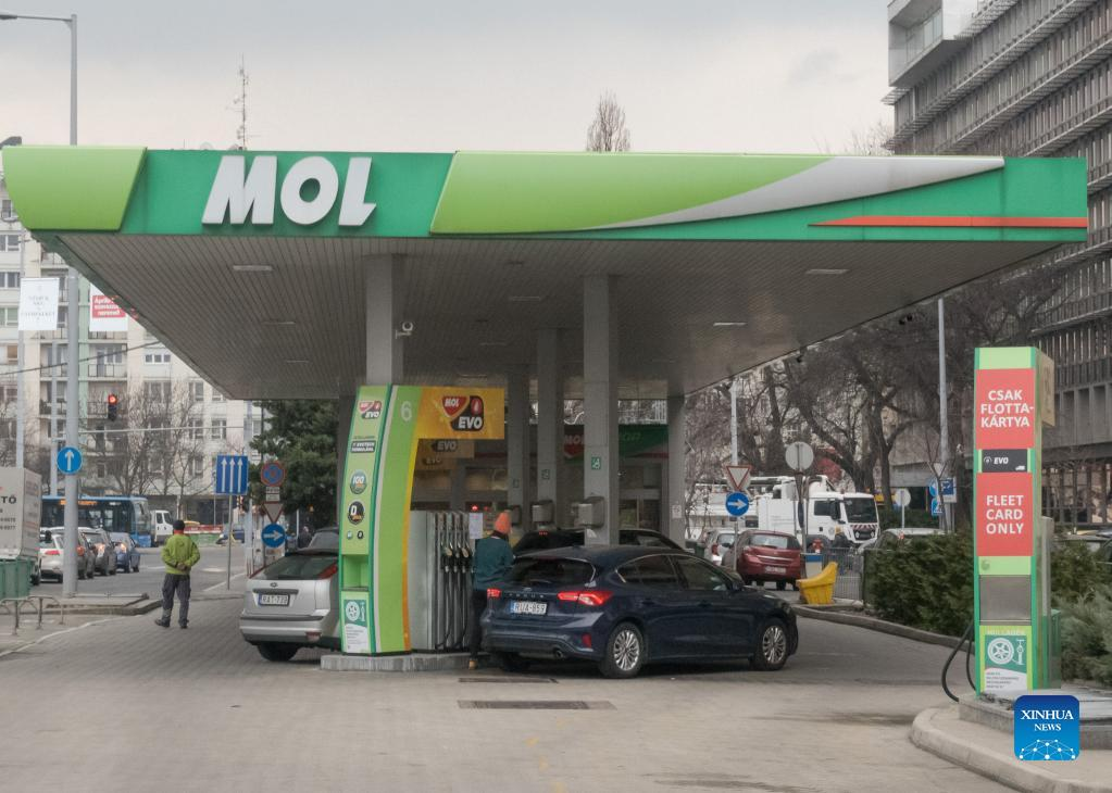Photo taken on March 4, 2022 shows a fuel station of Hungarian oil and petrol company MOL in Budapest, Hungary. The military conflict between Russia and Ukraine already had a negative impact on the Hungarian economy. (Photo by Attila Volgyi/Xinhua)