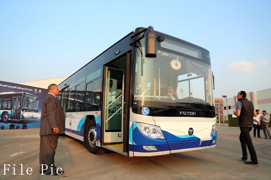 A Foton electric bus is seen in Salam City, east of Cairo, capital of Egypt, on Oct. 29, 2019. (Xinhua/Ahmed Gomaa)