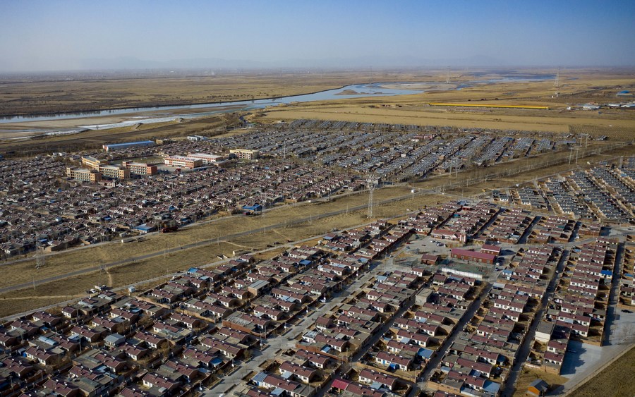 Aerial photo taken on March 4, 2022 shows a view of a village in Yueyahu Township, Yinchuan, capital of northwest China's Ningxia Hui Autonomous Region. (Xinhua/Yang Zhisen)