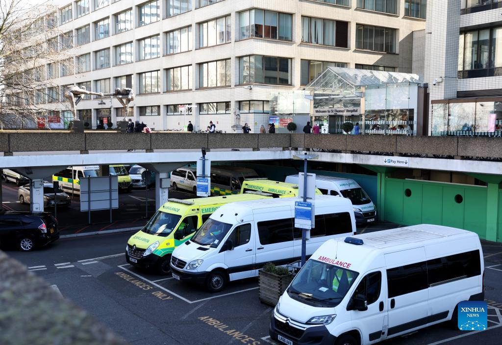 Ambulances are parked at a hospital in London, Britain, March 7, 2022. The global COVID-19 death toll has exceeded 6 million, according to the latest data from the Center for Systems Science and Engineering at Johns Hopkins University on Monday. (Xinhua/Li Ying)