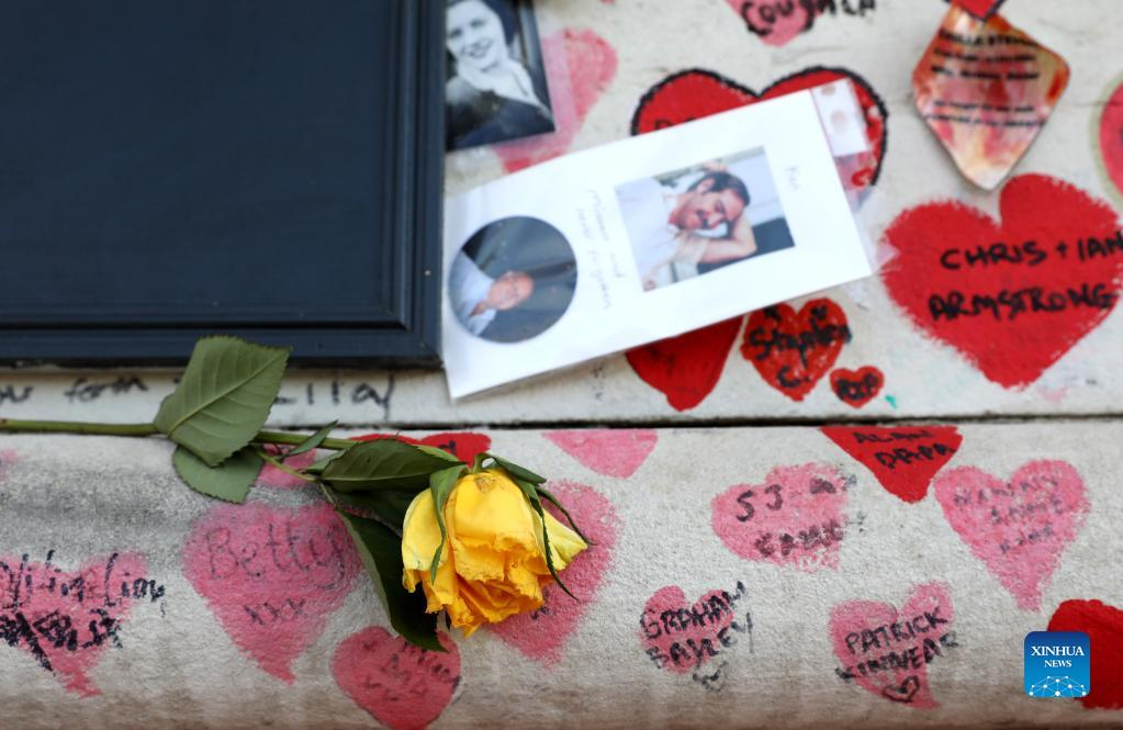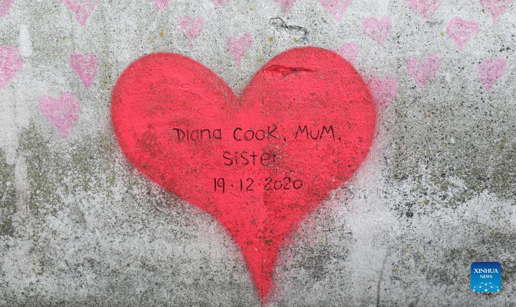 Hand painted hearts and messages commemorating victims of the COVID-19 pandemic are seen at the National COVID Memorial Wall in London, Britain, March 7, 2022. The global COVID-19 death toll has exceeded 6 million, according to the latest data from the Center for Systems Science and Engineering at Johns Hopkins University on Monday. (Xinhua/Li Ying)