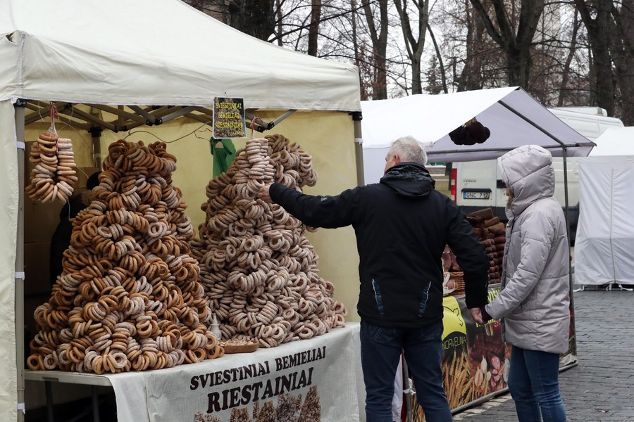 The three-day event, which also features folklore dances and songs, kicked off in the Old Town of the Lithuanian capital on Friday, attracting many folk craftsmen, traders and visitors.