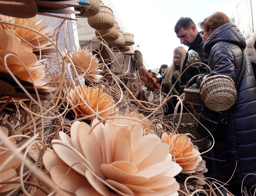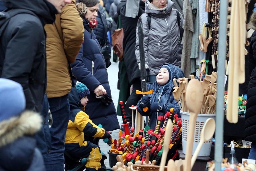 People visit the Kaziukas fair in Vilnius, Lithuania, on March 5, 2022. (Xinhua/Xue Dongmei)