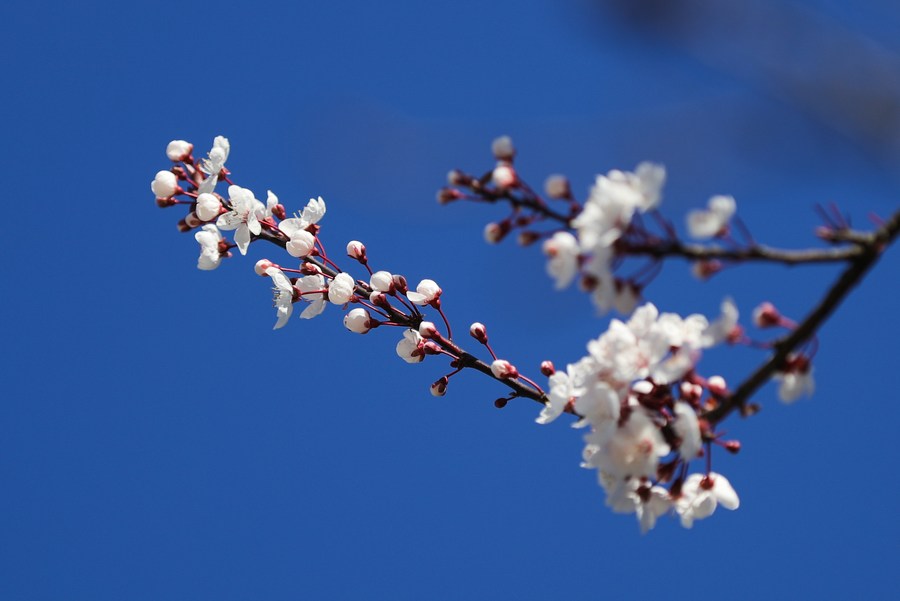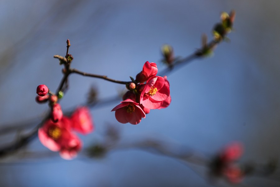 Blossoms are seen at the Park of the Fiftieth Anniversary in Brussels, Belgium, March 7, 2022. (Xinhua/Zheng Huansong)