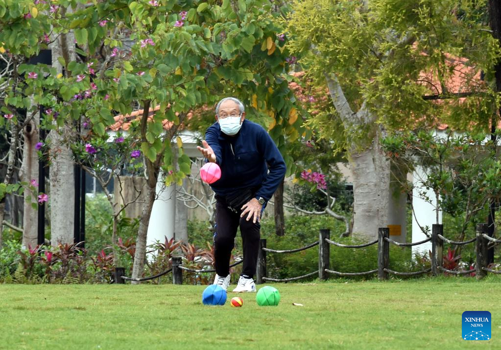 A citizen wearing a face mask does exercise in Ma On Shan in Hong Kong, south China, March 7, 2022. (Xinhua/Lo Ping Fai)