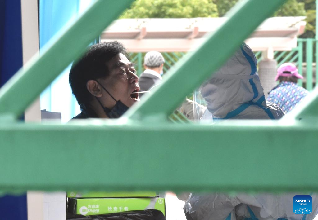 A medical worker takes a swab sample for nucleic acid testing at a mobile testing site in Ma On Shan in Hong Kong, south China, March 7, 2022. (Xinhua/Lo Ping Fai)