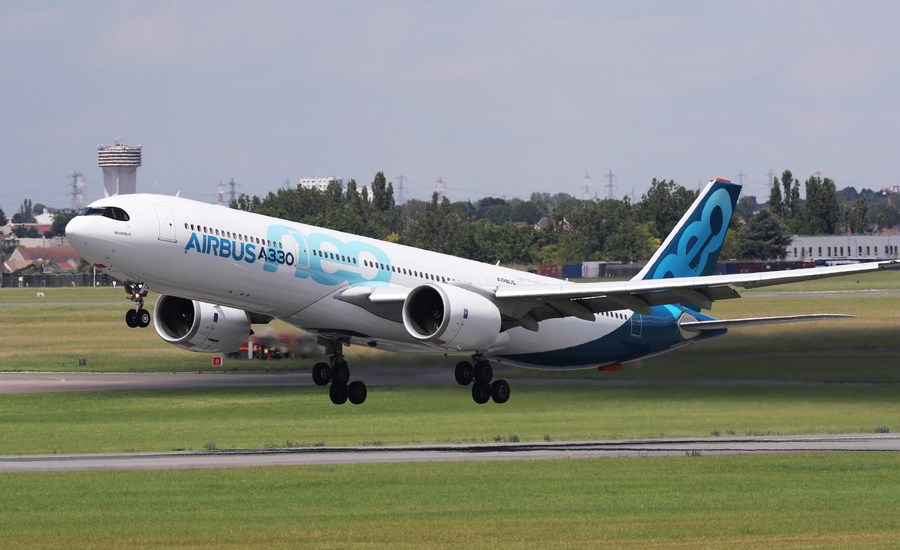File photo shows an Airbus A330 NEO performing during a flight display at the 53rd International Paris Air Show held at Le Bourget Airport near Paris, France, June 17, 2019. (Xinhua/Gao Jing)