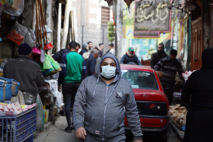 A man wearing a face mask walks on a street in Cairo, Egypt, on Jan. 21, 2022. (Xinhua/Ahmed Gomaa)