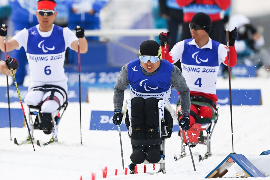 CHONGLI, Zhangjiakou, March 9 (Xinhua) -- Para cross-country skier Zheng Peng continued his legend as a history-maker in China's Winter Paralympic journey on Wednesday when he claimed the men's sprint sitting title at Beijing 2022.