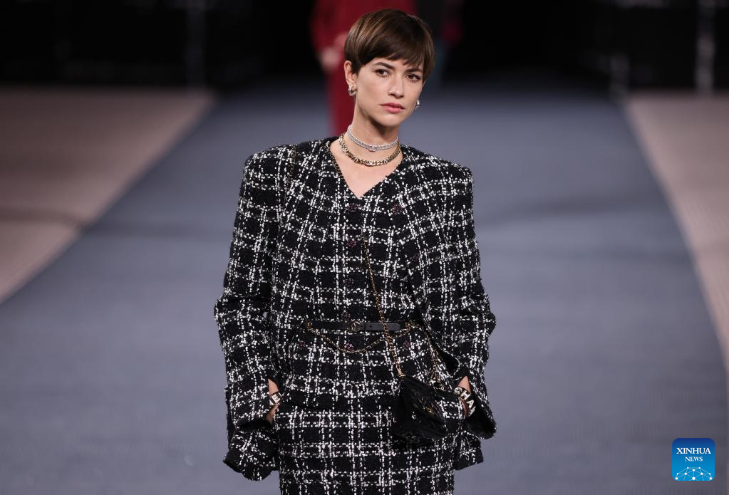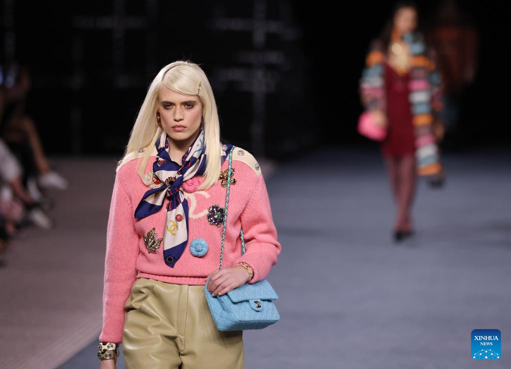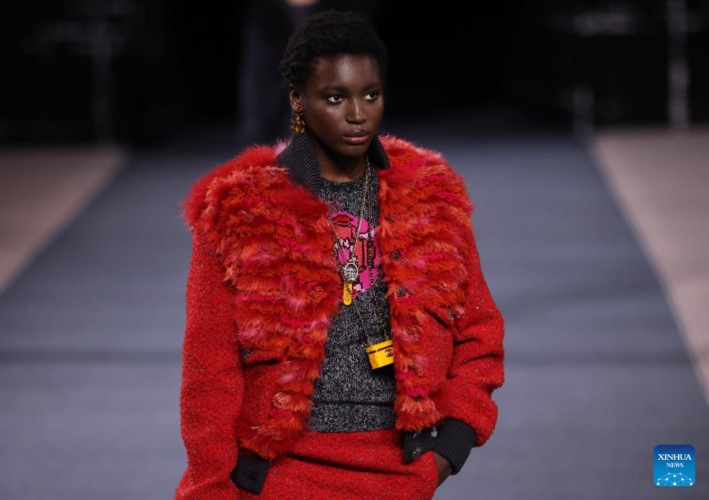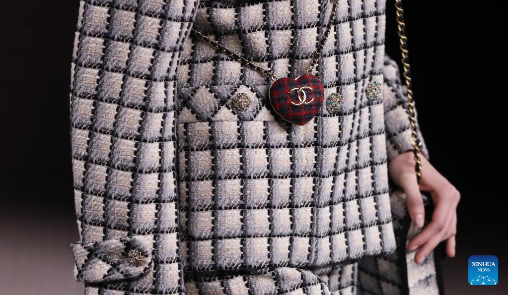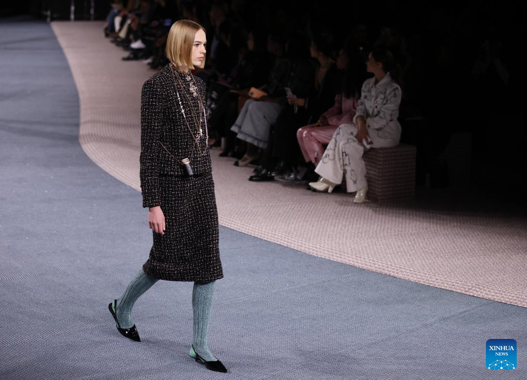 A model presents a creation of French fashion house Chanel's Fall/Winter 2022 ready-to-wear collections during Paris Fashion Week in Paris, France, on March 8, 2022. (Xinhua/Gao Jing)