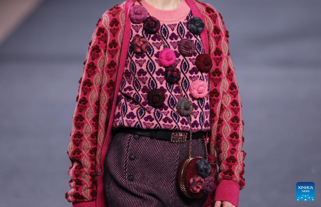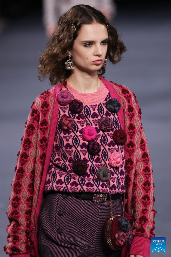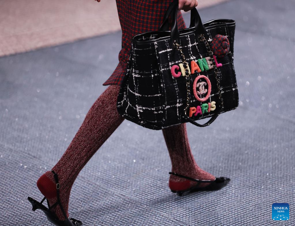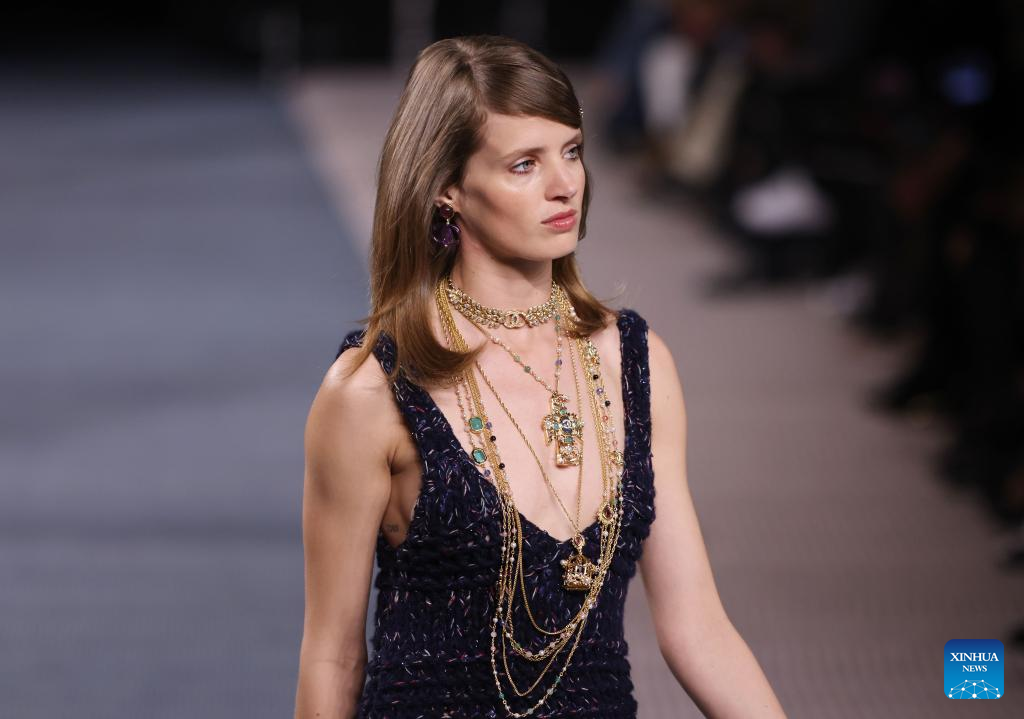 A model presents a creation of French fashion house Chanel's Fall/Winter 2022 ready-to-wear collections during Paris Fashion Week in Paris, France, on March 8, 2022. (Xinhua/Gao Jing)