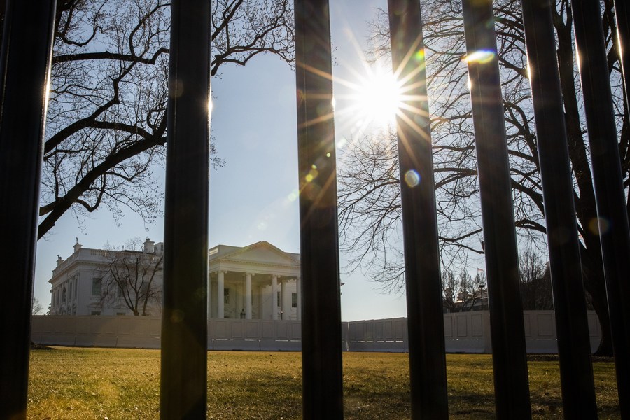 The White House is seen in Washington, D.C., the United States, on Feb. 15, 2022. (Photo by Aaron Schwartz/Xinhua)