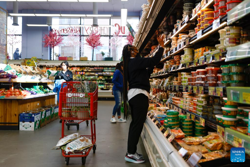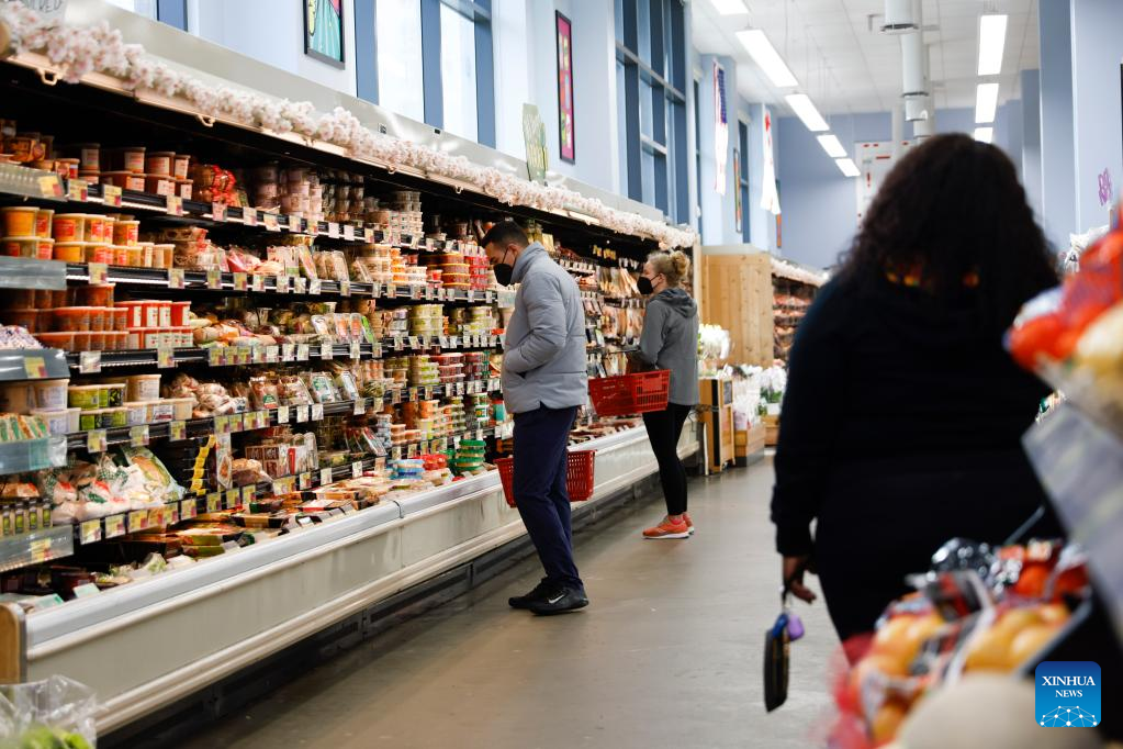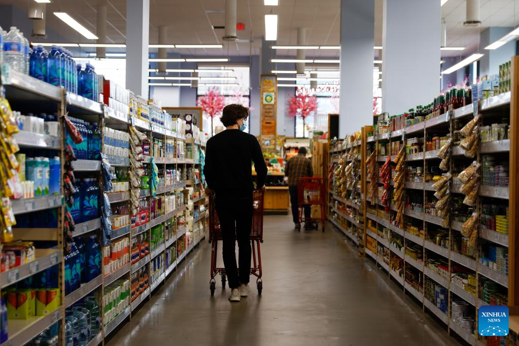 Consumers shop at a grocery store in Washington, D.C., the United States, March 10, 2022. U.S. consumer inflation in February continued to rise at the fastest annual pace in 40 years, the U.S. Labor Department reported on Thursday. (Photo by Ting Shen/Xinhua)