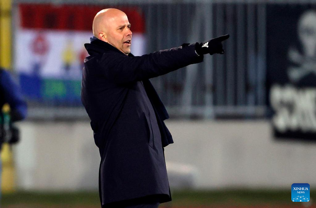Feyenoord's head coach Arne Slot gestures during a UEFA Europa Conference League round of 16 first leg match between Partizan Belgrade and Feyenoord in Belgrade, Serbia, on March 10, 2022. (Photo by Predrag Milosavljevic/Xinhua)