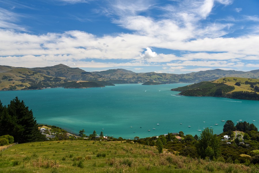 Photo taken on Jan. 11, 2022 shows a view of Banks Peninsula, where the town of Akaroa is located, in New Zealand. (Xinhua/Guo Lei)