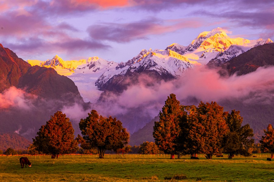 Photo taken on Oct. 12, 2020 shows a view of Fox Glacier on the west coast of the South Island of New Zealand. (Photo by Yang Liu/Xinhua)