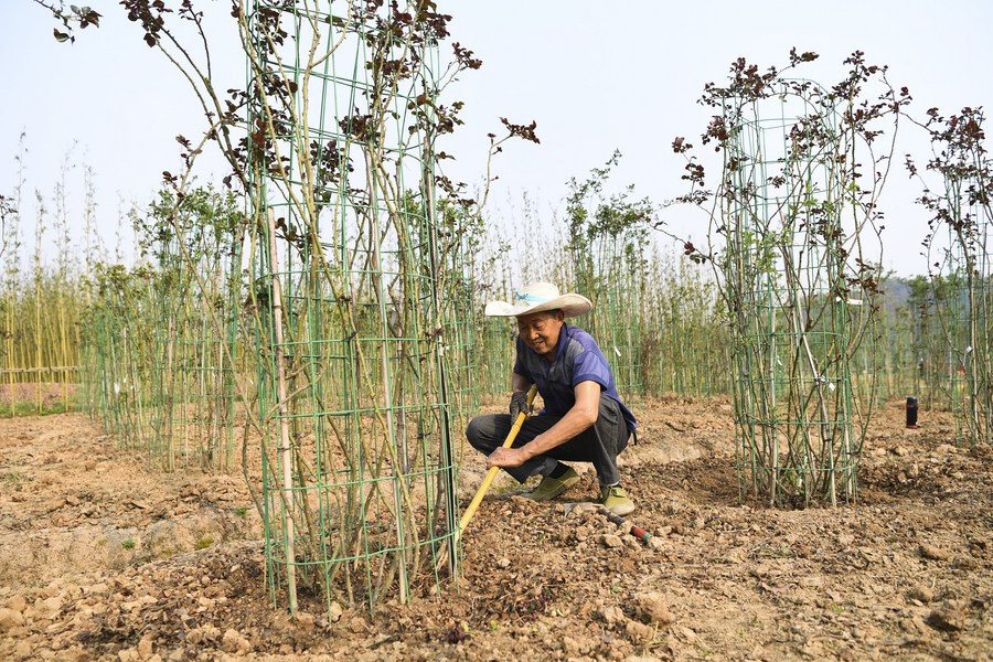 A staff member works to restore the ecological environment of Guangyang Isle in southwest China's Chongqing on March 10, 2022. (Xinhua/Wang Quanchao)■