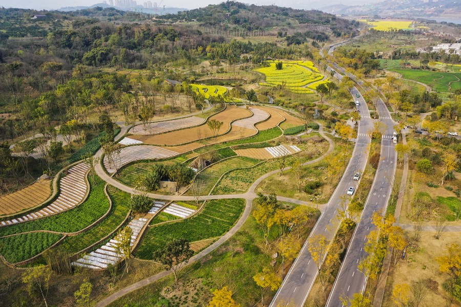 Aerial photo taken on March 10, 2022 shows the scenery of Guangyang Isle in southwest China's Chongqing. (Xinhua/Wang Quanchao)
