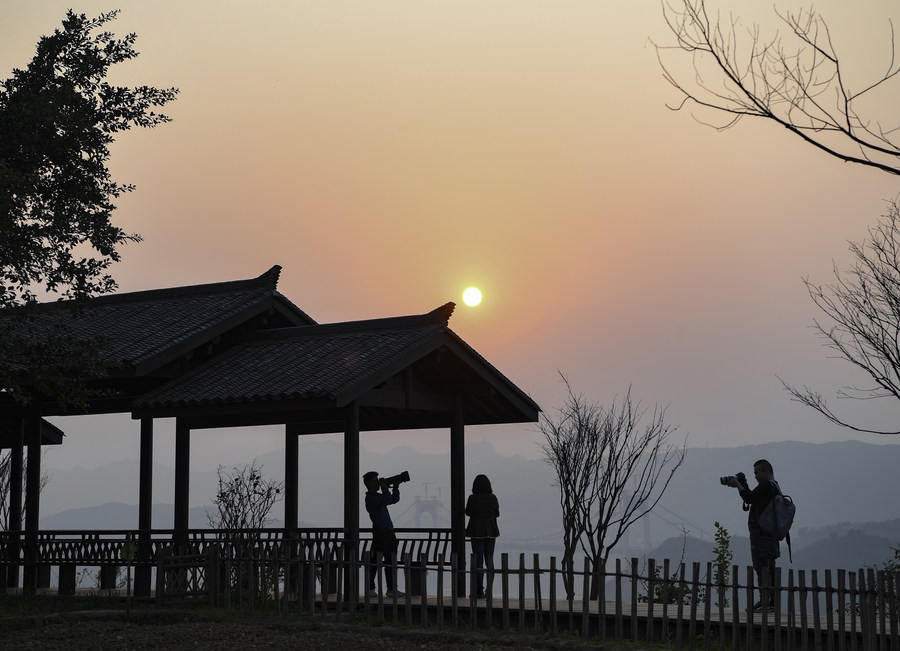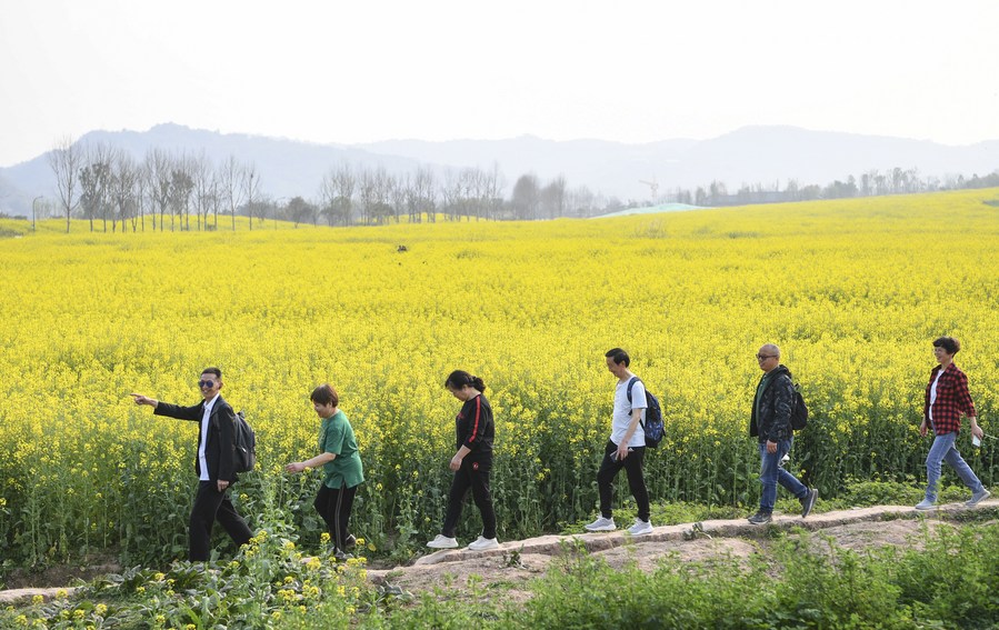 Tourists visit Guangyang Isle in southwest China's Chongqing on March 10, 2022. (Xinhua/Wang Quanchao)