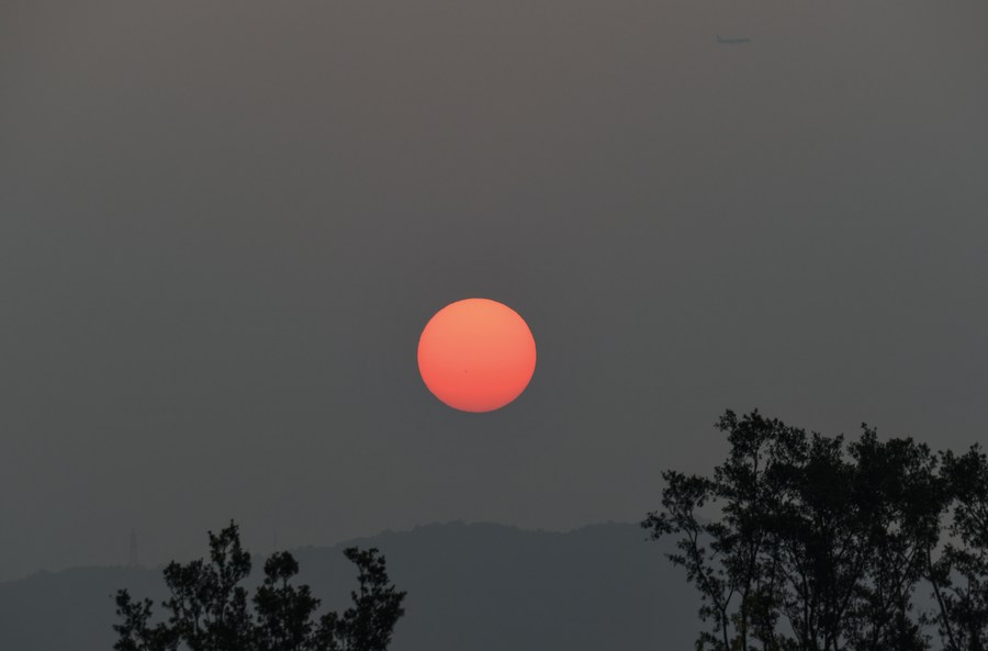 Aerial photo taken on March 10, 2022 shows the sunset seen from Guangyang Isle in southwest China's Chongqing. (Xinhua/Wang Quanchao)