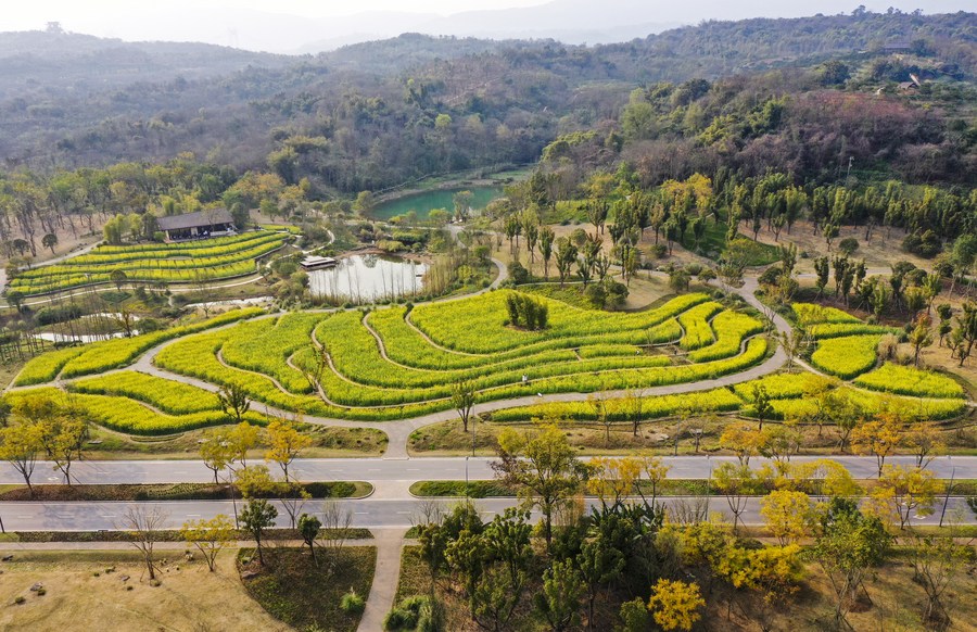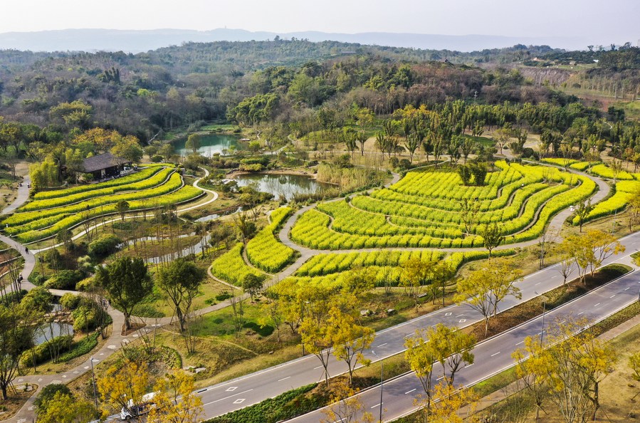 CHONGQING, March 11, 2022 (Xinhua) -- Guangyang Isle, the largest island on the upper Yangtze River, is rich in natural resources. In recent years, a series of measures have been taken to restore the natural ecological environment of the island. Now, the island attracts a large number of tourists every spring.