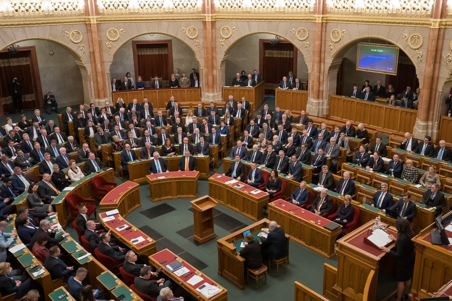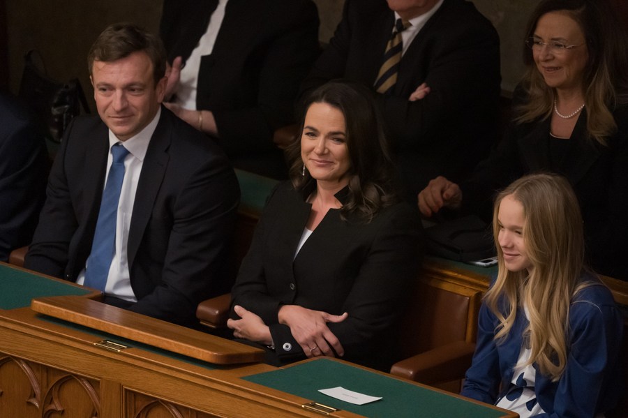 BUDAPEST, March 10 (Xinhua) -- The Hungarian parliament on Thursday elected Katalin Novak as the country's first female president for a five-year term, winning over economist Peter Rona in a vote split along party lines.