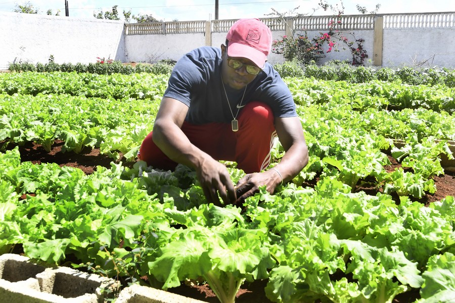 This photo taken on March 9, 2022 shows Robles at work in the garden of his farm in Cotorro, just outside Cuba's capital Havana. (Xinhua/Joaquin Hernandez)