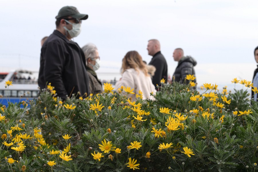 People enjoy their weekend at the Bosphorus Strait in Istanbul, Turkey, Feb. 20, 2022. (Xinhua/shadati)■