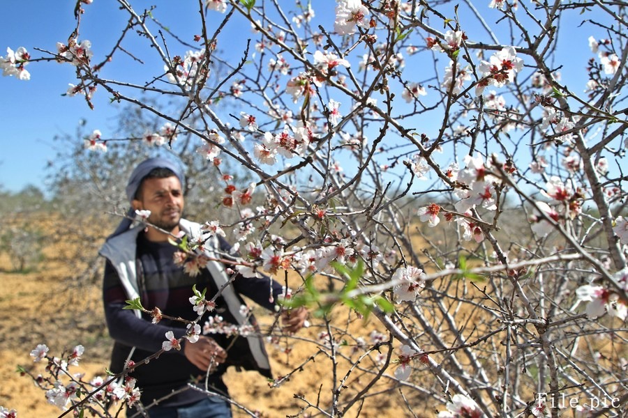 In Israel and Palestine, almond trees are blossoming with snow-white petals.
