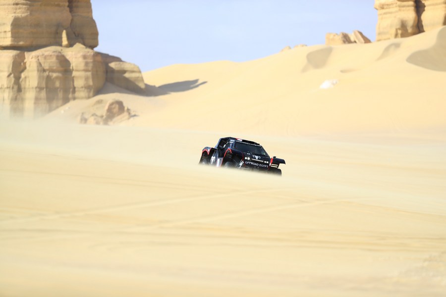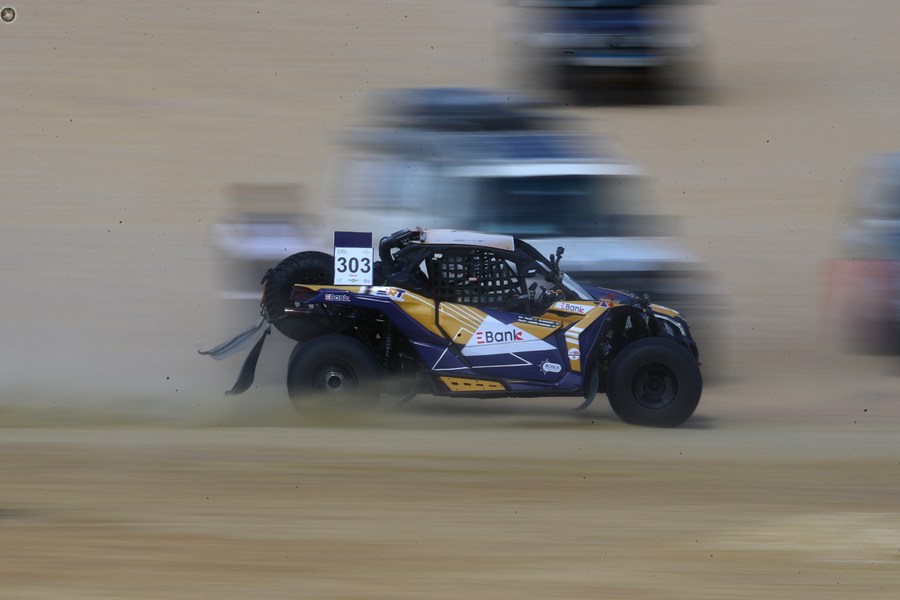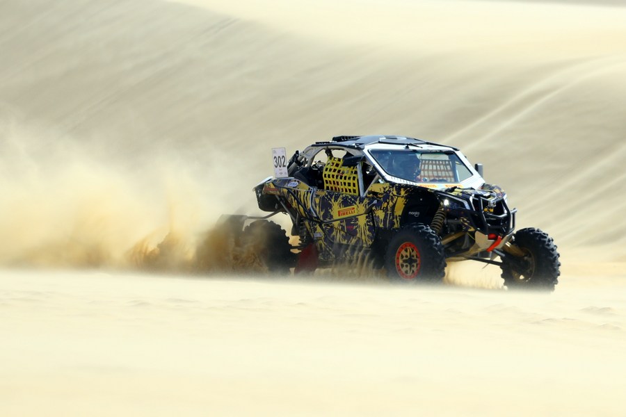 A racer steers his car during the Egypt Desert Challenge Rally, which began in the desert of Fayoum, Egypt, on March 11, 2022. (Xinhua/Ahmed Gomaa)