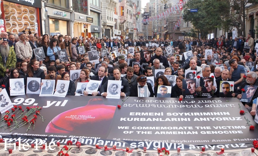 Armenians commemorate the 99th anniversary of the Armenian Genocide at the Taksim Square in Istanbul, Turkey, on April 25, 2014. (Xinhua File photo)