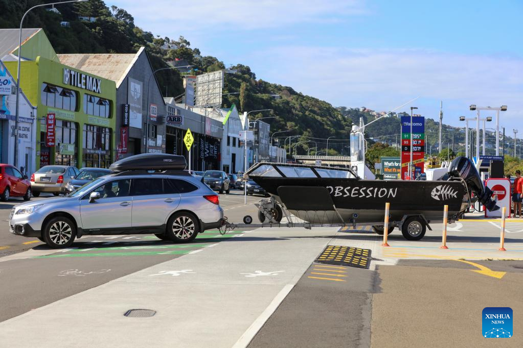 A man drives away from a Waitomo gas station in capital Wellington after filling the tanks of his jeep and boat in the afternoon of March 11, 2022, moment before another hike of fuel price. Cars, boats and gallon bottles, New Zealanders were filling every tank with fuel before another big price hike tipped at the weekend. Petrol prices have already jumped up dramatically over the past month, which saw national average price of 91 petrol increase 11.8 percent to 2.94 New Zealand dollars per litre, and 23.1 percent increase for diesel to 2.28 New Zealand dollars per litre, according to the price comparing tool Gaspy. (Photo by Meng Tao/Xinhua)