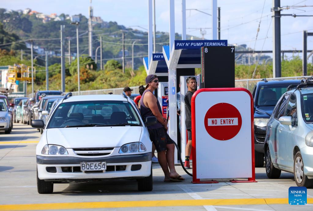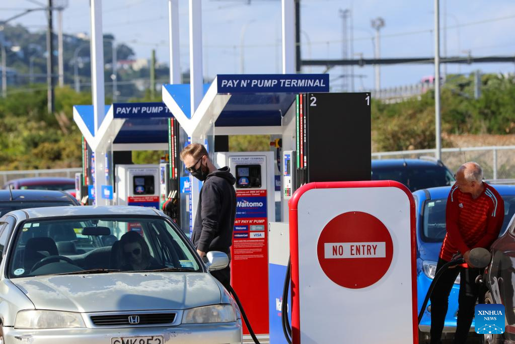People queue to fill the tanks at a Waitomo gas station in New Zealand's capital city Wellington in the afternoon of March 11, 2022, moment before another hike of fuel price. Cars, boats and gallon bottles, New Zealanders were filling every tank with fuel before another big price hike tipped at the weekend. Petrol prices have already jumped up dramatically over the past month, which saw national average price of 91 petrol increase 11.8 percent to 2.94 New Zealand dollars per litre, and 23.1 percent increase for diesel to 2.28 New Zealand dollars per litre, according to the price comparing tool Gaspy. (Photo by Meng Tao/Xinhua)