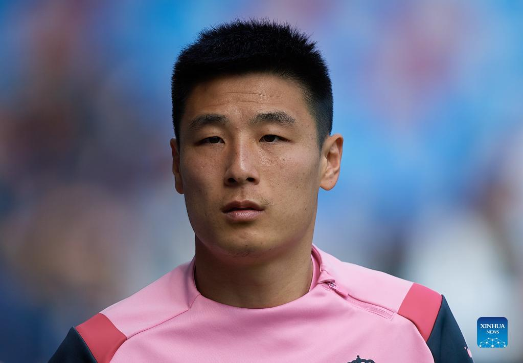 Espanyol's Wu Lei reacts before a La Liga match between Levante UD and RCD Espanyol in Valencia, Spain, March 12, 2022. (Photo by Pablo Morano/Xinhua)