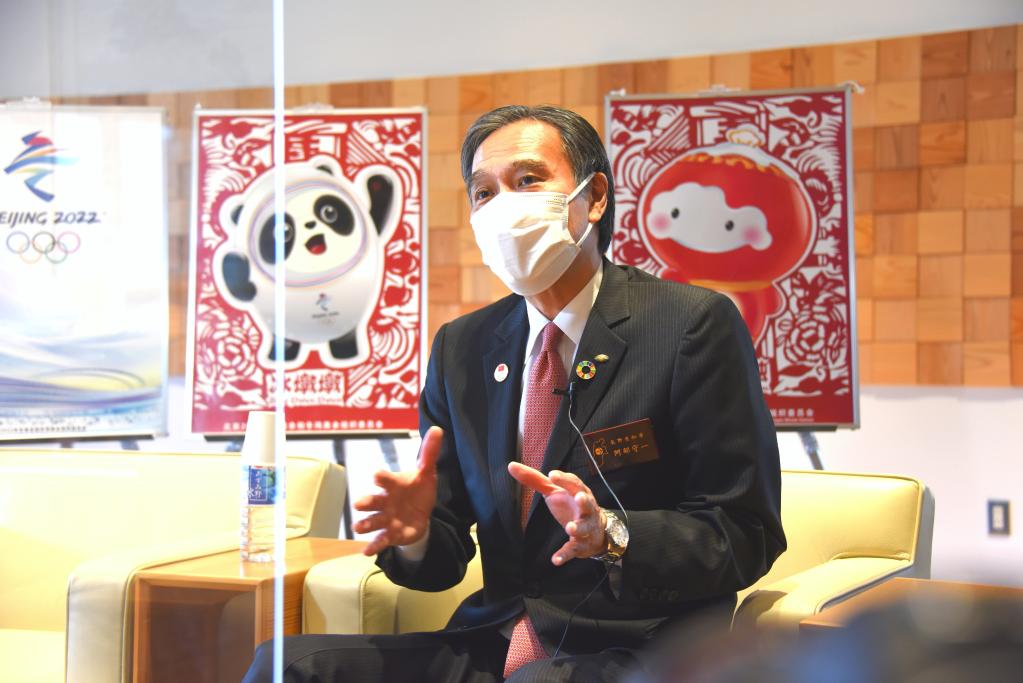 Shuichi Abe, governor of Japan's Nagano Prefecture, shares his views on the Beijing Olympic Winter Games during an interview in Nagano on March 9, 2022.(Xinhua/Gang Ye)