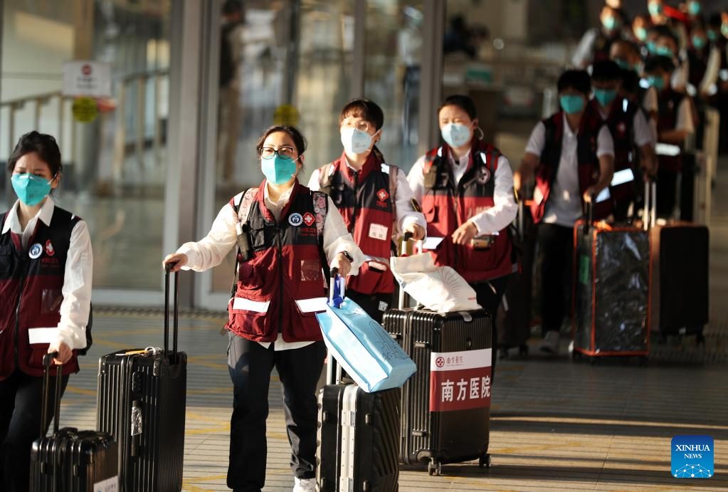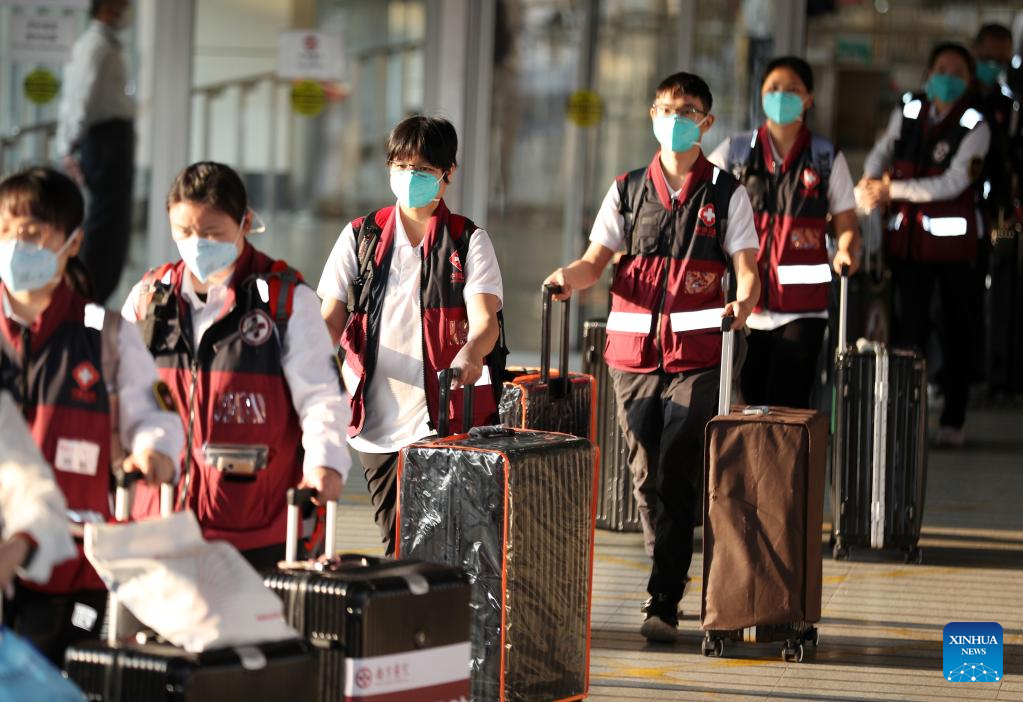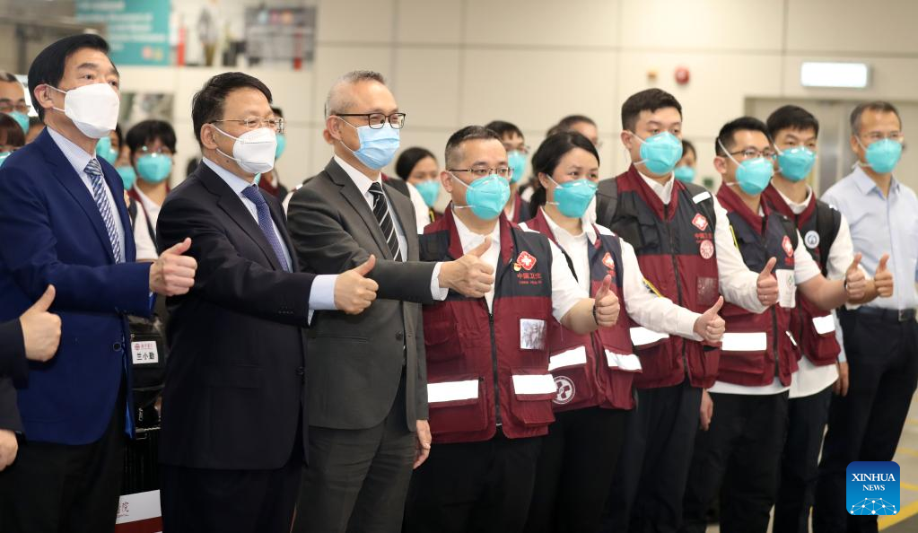 HONG KONG, March 14 (Xinhua) -- The latest batch of the Chinese mainland medical staff on Monday arrived in Hong Kong to support the local fight against the COVID-19 epidemic.