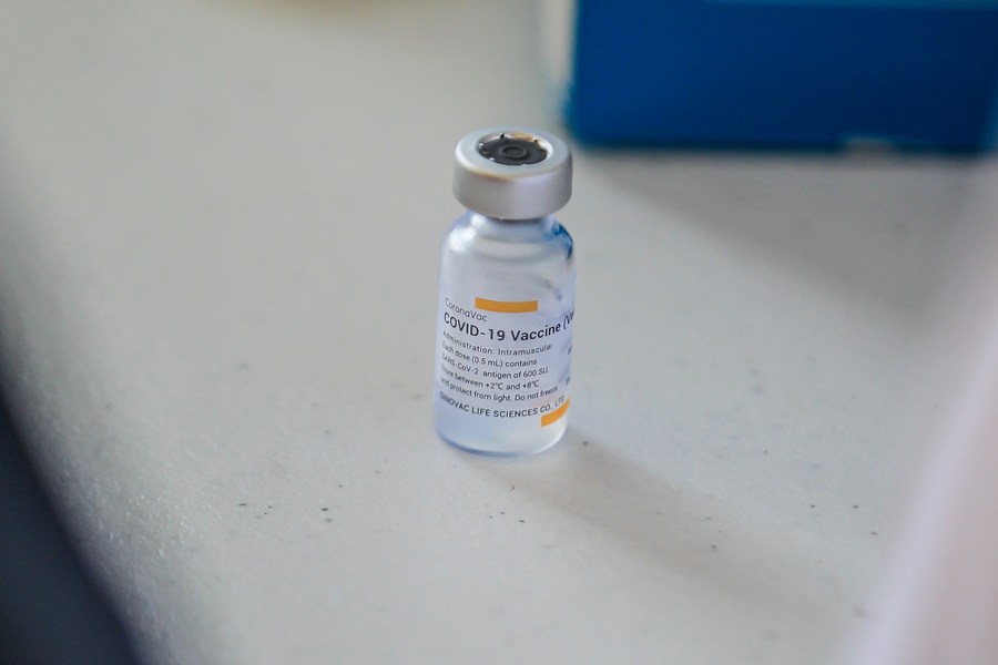 A vial of the Sinovac COVID-19 vaccine is seen at a vaccination site in Manila, the Philippines on May 1, 2021. (Xinhua/Rouelle Umali)